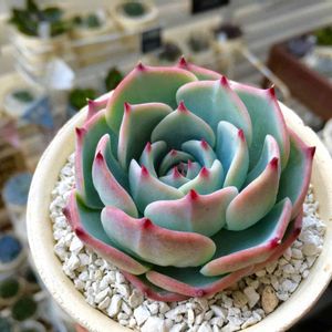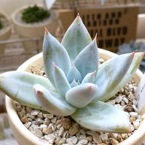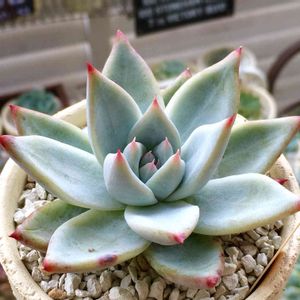 サボテンと多肉植物の即売会。 緑っぽい葉でぷっくり。