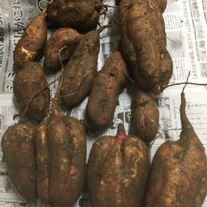 さつまいもを全部掘り上げました🍠 1枚目 シルクスイート 2枚目 安納芋 畑で作る初めてのさつまいも🍠 それぞれ10本づつ植えましたが、あまり良い出来ではないような😓 それぞれ2〜3kgくらい採れました。 雨が少なかったからか土がカチカチで中々抜けなかったので鍬を使ったら削れるは折れるは💦 無事に掘れたお芋は半分くらいかも😓 シルクスイートは初めて食べましたが、なめらかでしっとりして甘くて美味しい😋 これは来年も植えなくては😆 ただし、もっと深く耕して畝も高くして植えようと今回の結果から思いました🍠