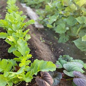 野菜部👩🌾 おはようございます🌞 先月末に蒔いた大根がいい感じで成長しています😃 この後、間引いてお味噌汁にしました😋 右はサツマイモ🍠 掘るタイミングがわからない💦 毎年10月に入ってなんだけど、今年はもう少し早くて大丈夫かなぁー?