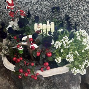 🧑🎄🎄寄せ植え🎄🤶 クリスマスバージョン🪅🎄 チェッカーベリー ブラックビオラ アリッサム クリスマスオーナメントを飾り 雰囲気を楽しんでます✨💕