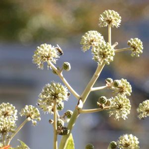 「今日のお花」 *ヤツデ* 我が家のヤツデは、昭和時代からご先祖様が育てていたらしく11月中になると白い花を咲かせ、香りが強いので虫たちを誘うようです。