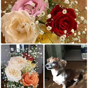 ご近所さんから💐いただきました 先月 愛犬ナッツ🐶16才5ヶ月で旅立ちました。寂しくて仕方ないけれど 今も心の中でずっと一緒だよ💞 お花と🐶 ここに残させてください🙇♀️