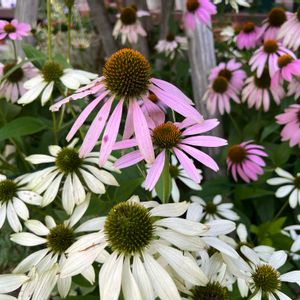 ときめき✨エキナセアたち part1 5〜6年宿根している、産直の白い花。 よく種が付いて、溢れて増えています。 part2 サーモンピンクのプレイフルメドママ part3 ❤️7〜8年前にもらった株、 蕾の時から、ワクワクします。 part4 💕この株も毎年零れ種で、 周りに🌱が出てきます。 part5 ホワイトダブルデライト ダブルは、華やかです。 グリーンツイスターや、ジュエルは もう少し時間がかかりそう……💚