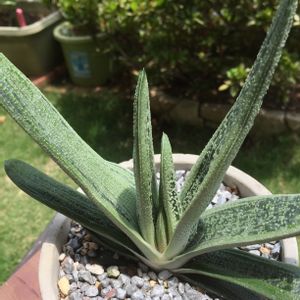 ⏪前のpicより 親離れした新芽👶は、こちらGSのくろちゃん様とオソロの鉢へ お母さんみたいに、綺麗な水玉模様☔が出ますように 🌵追記🌵 ガスてり様に「ガステリア ドラゴンスキン」と、お名前を教えていただきました てっきり「ガステリア グリーンアイス」と思っていたのですが、実はドラゴンでした 💚🍦→🐲 ガスてり様、有難うございます (*^-゜)vThanks!