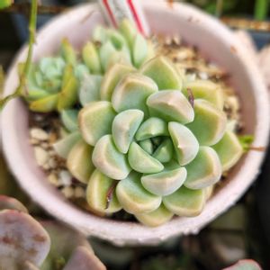 だるま姫秋麗×ケッセル ごまさん苗 素焼き鉢 雨ざらしにしてからふっくら元気になった この場所の素焼き鉢は長雨でも徒長しにくい