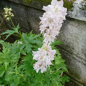 終わりかけですが デルフィニウムです☺ 切り戻ししたら 花がたくさん付きました! ピンク色らしいのですが 私には白にしか見えません(笑)