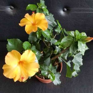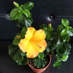 こんばんは🌙😃❗ 今日は、和歌山に 桃求めて出掛けました。 清水、川中島、桃🍑が、手に入り、知り合いにも、少しずつお裾分けできました。 戻ってきたら、黄色のハイビスカスが、咲いていました。 花径は、9cm 少し小さいかな。 外に、赤いハイビスカスの蕾も、色づき始めました。 オレンジのハイビスカスは、一休みしています。 また、明日には、咲きそうな蕾が、あります。 順番に、咲いてくれると嬉しいです。