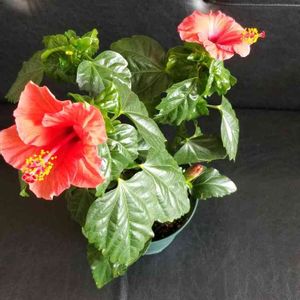 おはようございます。 オレンジ色のハイビスカスまた、ひとつ咲きました。 窓辺には、3鉢のハイビスカスが、います。 赤いハイビスカスも、咲いています。 並んでいる可愛い共演 元気になりました。 チコちゃん見ながら、 投稿しています。