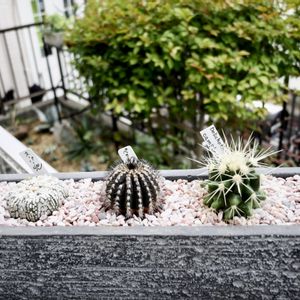 ミニサボ長四角鉢 植え替えして100均デコジャリ敷きました😊