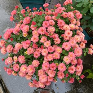 ガーデンマムいくつか夏に枯らしたけどこのピンクのマムは残ってくれてた!今年も綺麗に咲きました✨ 夏に消えたダリアも復活