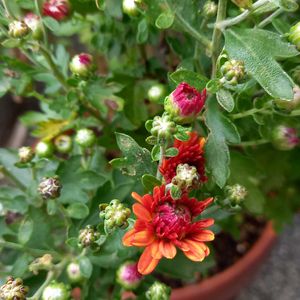 おはようございます👋 去年見切り品でお迎えしたガーデンマム 大きくなって蕾がたくさん出来ています 🧡❤️ 2ポット共に同じ色が咲きそうです😊