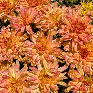 お祭り会場に咲いていたポットマム(ガーデンマム)のお花、目に入ったので撮影しました😆👍🌼🌼 とても綺麗でした😍🤩✨ 眩しい色でした🤩🌼🌼🌼✨✨✨🧡❤️🧡❤️ 3枚目はこのポットマム(ガーデンマム)をコラージュにしました😆👍🌼🌼✨✨🧡🧡❤️❤️ ホント色がとても素敵でした😆👍🤩🥰😍🌼🌼🌼🧡❤️🧡❤️🌿