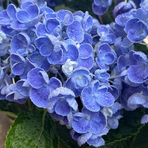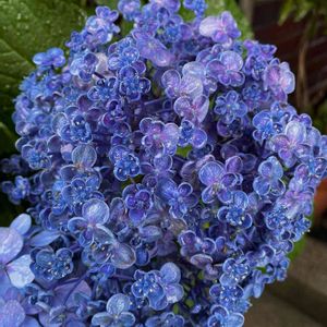🏷青い花で梅雨景色2023 🏷青い紫陽花マニア 🏷煌めきの金曜日 🏷青い花と雫マニア 紫陽花 ポップコーン・ブルー🩵 可愛らしいブルーの紫陽花💙🩵 丸まった花びらが雨粒だらけ〜 ただいま、車庫に避難中です😅