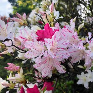 いつものお散歩コースにて 白い花びらにピンク色が混ざった ツツジを見つけました。 何というツツジなのかなぁ〜? ネットでいつもの様に調べて見たら リュウキュウツツジと有りました。