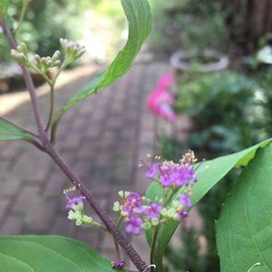 紫式部の花がだんだん色づき始めました。薄紫色でほんのりお色気ありますねぇ!