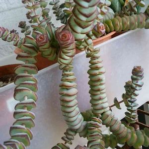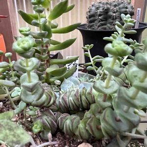 ベビーネックレス クラッスラ属 これは暴れてるというのか、這う姿になってます 奥に居るのは誰でしたっけ😋 雨降りで寒くなる今日明日の様🌿