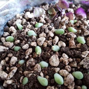 多肉植物💚新玉つづり💚 2〜3個ポロリと落ちていた子から根っこみたいなのが? このまま土の上に置いといたら根付くのかなあ😅