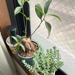 右はアーモンドネックレスさん 下向きに伸びてる😊 真ん中は新玉つづりさん 3本が自由に伸びてる😅 左はパールネックレスさん なぜか全然伸びない💦 みんな元気だからいいけどね💕😊