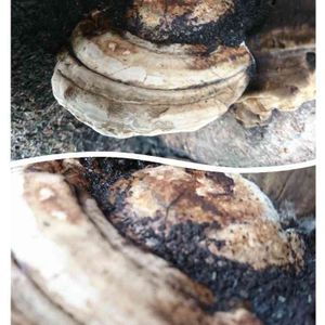 今晩は😃🌃 ソメイヨシノの傷んだ幹の所から生えていました。サルのコシカケの種類ではないかと思われます。