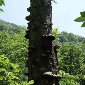 鶴脚山 (916m) ツガサルノコシカケ(栂猿腰掛)、ヒダナシタケ目サルノコシカケ科キコブタケ属の硬質多年生