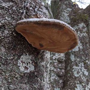 サルノコシカケ? 無柄が多い中、中々カラフルです😊 ファミリーでしょうか?🤠 サルノコシカケと言う和名はないそうです🙃 科名でサルノコシカケ科としているそうです😉 漢方薬になります🤠 マンネンタケ(霊芝)かも? #きのこ🍄#猿の腰掛け?#霊芝?