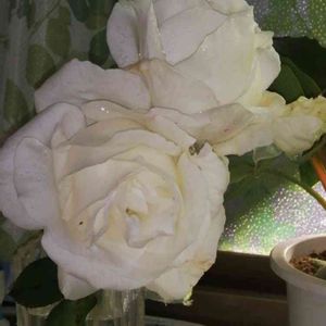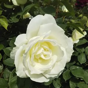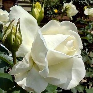 正雪・Masayuki 京成バラ園芸作1992 アイボリー色がかかった 白色の半剣弁平咲き 花径15㎝を超える巨大輪
