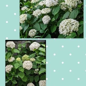 こんにちは。◕‿◕。 庭の紫陽花アナベルが、大きくなり白くなって来ました ✨🤍🤍🎶
