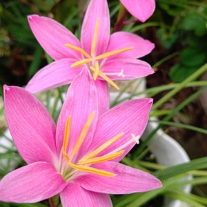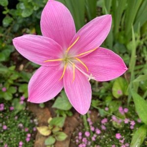 今朝雨降る前に🥰 *ゼフィランサス💗💗💗 3コ並んで咲きました(ღ*ˇ ˇ*)。o♡