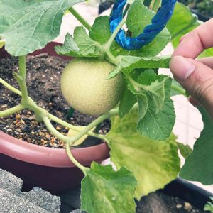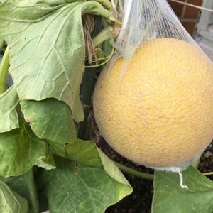 鉢植えメロンのころたん♡ 網目模様も付いてきて、色も黄色くなって来ました🍈
