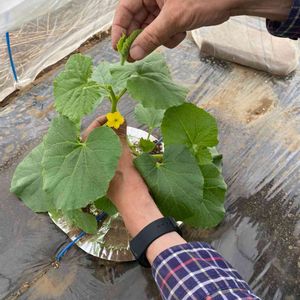 メロンの🍈ころたん遂に雌花1号が咲きましたので朝さっそく雄花を取り人工授粉しました👍😊🙆♂️🍈大きく育ってね!✌️🙏