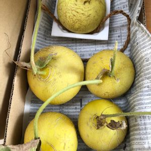 ころたん収穫しました🍈 1昨日の状態😭より回復は見込めないと判断。2個は収穫期のようで、3個は未熟ですが仕方ありません💧 仏壇にお供えした後、家族でいただきます😋