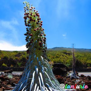 本日は山の日 過去に山で撮った思い出写真です。 ハワイ島 オニヅカセンター脇、山の中へと続く道で見た銀剣草です。 地球で上記の3か所でしか見られない貴重な高山植物 ヒマラヤ マウイ島のハレアカラ ハワイ島のマウナケアだけに生息しているといわれている希少な植物。 花をつけるまでに数十年、個体差もありますが50年クラスの子もいるそうな。 一度咲いたら種を残して枯れてしまうので花が見れたらラッキーなのです。 この写真は2015年5月撮影 翌年も訪れましたが枯れていました。 今日は甲府のイベントの花火が中止になり皆さんの花に癒されています。