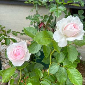 少し前のpicより🌸 ブラッシュノアゼットとクリスティアーナ✨💕ふんわりかわい子ちゃんペア🍒 ブラッシュノアゼットはこの後満開〜って時にドシャドシャ雨が降って倒れて汚れちゃった😭悲し〜💦 ま、よく咲く子だからね💓 またこのあと期待しましょ🎶✨