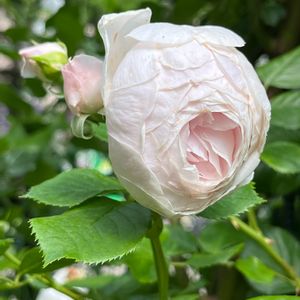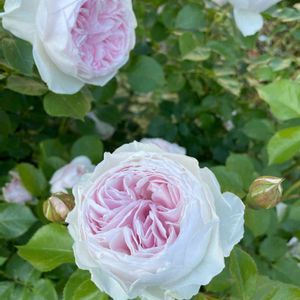 クリスティアーナ 爽やかな香りと ほんのりピンクのお花は ロマンチックでアンティークな雰囲気 大株を地植えにして、3年目です。 ネットで調べると「2年くらいすると凄い勢い!」と、書いてあって(^^;; まさしくその通り! オベリスク仕立てにしていますが、更に行き場を探している様子だったので、隣に設置したアーチにも誘引しています。 14番手🧚♀️✨