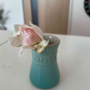 挿し木のクリスティアーナさん🌹 一輪挿しにしていたらキレイに咲いてくれました😆💖💖💖 なんてかわいいのーーーー💕 色も形もかわいすぎる(๑˃̵ᴗ˂̵)