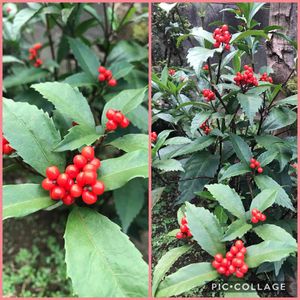 🔴マンリョウ←、センリョウ→ 毎年庭を彩ってくれる赤い実たち❣️ お正月のイメージが強いけれど、クリスマスにもお似合いかも🎄