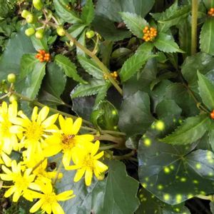 センリョウの 🌕黄色い実 と🔴赤い実 朝が冷えるようになったので センリョウ(千両)の実も 色付きました😀 両方共に🐦鳥さんからのプレゼントです! 花瓶で、なんと3月ぐらいまで保ちます! クリスマス🎅やお正月🎍の脇役にしてます🤗