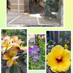 今日の庭🌼 プルメリア・デザートサンライズ 今年は4本共開花しました💕 種蒔きしたアグロステンマ💜 ハイビスカスも次々に咲いてます💛 メダカちゃんも元気です♪
