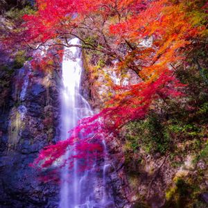 おはようございます(*˘︶˘*).。.:*♡ 今日から12月… 寒さも日を追って厳しくなってきましたが、体調崩さないように今月も乗り切りましょう…☺️💕✨ 写真は「日本の滝百選」に選定されている落差33mの箕面の大滝。 真っ赤なカエデ越しに迫力満点!(*≧∀≦*)✨🍁 燃えたつ紅葉に滝の音が冴えわたり、秋涼爽快、我を忘れるほどの見事さでした…✨✨