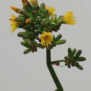 背の高い雑草が、裏庭の隅っこで ひっそり咲いてました。 ①上 ②下 AIに聞くと『オニタビラコ』だそうです。 現在草丈70cmです(o゚Д゚ノ)ノ 抜く前に📷️✨