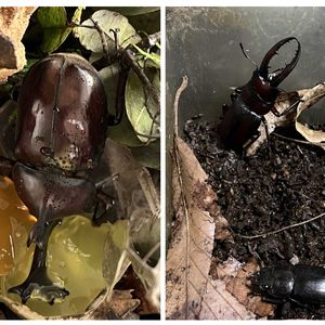 番外編です🪲 虫が苦手な人ごめんなさい🙇🙏 金曜日の夜、いとこと一緒に近くの林に行って来て捕まえたカブトムシくんの♂とノコギリクワガタくんの♂♀です😆👍🪲🪲 ノコギリクワガタくんはそんなに大きくないですがカッコいいです😆👍 カブトムシくんは大きくて立派です😆👍🪲 現在飼育中です👍 昆虫ゼリーを良く食べてくれます😆😆👍👍🪲🪲 毎年、カブクワを見ると昔、友達が遊んでいたカードゲーム(甲虫王者ムシキング)を思い出して来ます😆👍 懐かしいカードゲームです😆👍💳🎮 自分のユーザー名もムシキングですが😅😆👍✨✨ カブクワくんは自分が子供の頃からの憧れです🤩🪲👍 本当にカッコイイ‼️😆✨