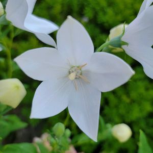 🏷️今日のお花 キキョウ 🏷️お散歩ちゃんスタンプ 🏷️スタンプして遊ぼ♡ 参加します(*˘︶˘*).。.:*♡ 今年花壇に咲いたキキョウ 沢山咲いてくれました🤍 蕾もまん丸 (,,>᎑<,,)かわゆෆෆ おまけ 昨日の夕日 お散歩ちゃんバイク🏍️も参加 よそ見は危ないね😅