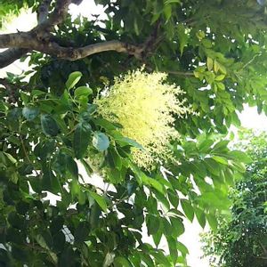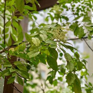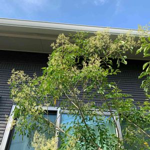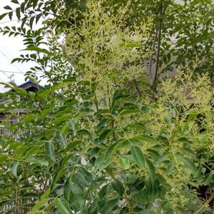 お庭のシマトネリコに花が😍 まだ咲いてないけど~ 毎年強めに剪定してたから花をつけたことがなかったけど、今年は木陰がほしい母の希望で手を加えなかったら、花が咲くようです♪