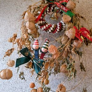 5分で出来る🎄リース フウセンカズラを土台に 花友さんの✨アイデアを貰いました✨飾りは有る物で キッチンを飾った苔玉 夏の終わりから楽しませてくれましたょ