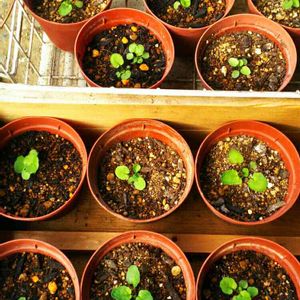 この子は種まきしたビオラさんです💕 鉢上げしました。 大きくなって嬉しい😆