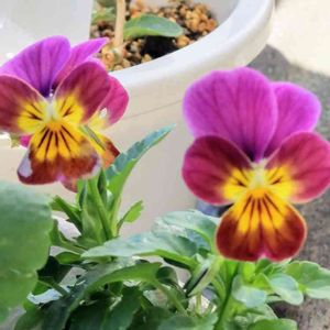 遅くなってから出て来たビオラ🌸 色んな色で可愛く咲きました😃