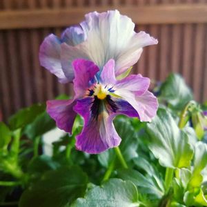 (๓´˘`๓)こんばんは♪ 今日もおつかれさまでした。 雨が降ってきましたよ😅☔ 昼間の1枚…ビオラさん プチプチパープルウィング 長〜いお名前😁ですね