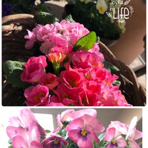 🌿今日のベランダ🌿 ビオラ、プリムラ、パンジー 花殻摘みの為ベランダに出ると マスクをしていても くしゃみ🤧 花粉症には、ちょっと辛い時期😅💦