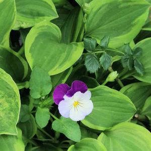 あら〜、ギホウシ🌱さんの中から、零れ種のビオラさん😘 可愛いよ ガンバレ〜💕