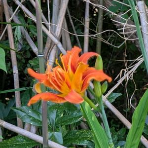 林の中に見つけました。オニユリ?形状が違います。検索するとヤブカンゾウと出ます。